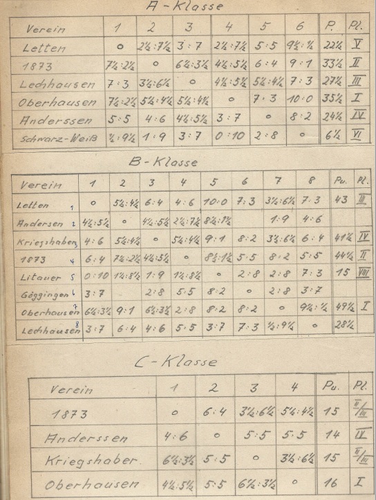 Ich habe in unserer Schach-Chronik die Tabelle der Mannschaftskämpfe der Saison 1946/47 gefunden, die erste Saison nach dem 2.Weltkrieg. Es gab damals in Augsburg einen lettischen und einen Litauischen Schachklub, der letzte der beiden wurde so um 1960 herum aufgelöst.